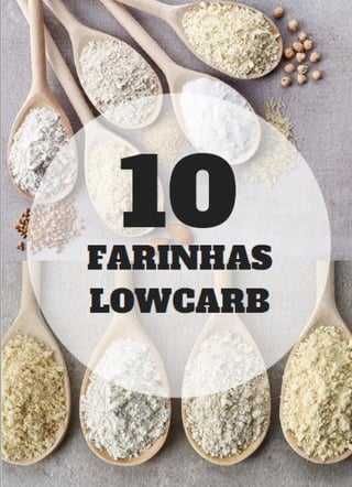 Este documento fornece instruções para fazer farinhas low carb a partir de diferentes ingredientes, incluindo amêndoas, amendoim, banana verde, casca de maracujá, castanha de caju, castanha do Pará, coco, linhaça, nozes e semente de abóbora. Fornece os ingredientes e passo a passo para cada receita de farinha.