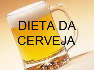 Este documento sugere uma "dieta da cerveja", afirmando que beber cerveja antes das refeições reduz o apetite, que a cerveja é basicamente uma granola por conter vegetais, e que fornece hidratação, calorias e carboidratos necessários em uma caixa.