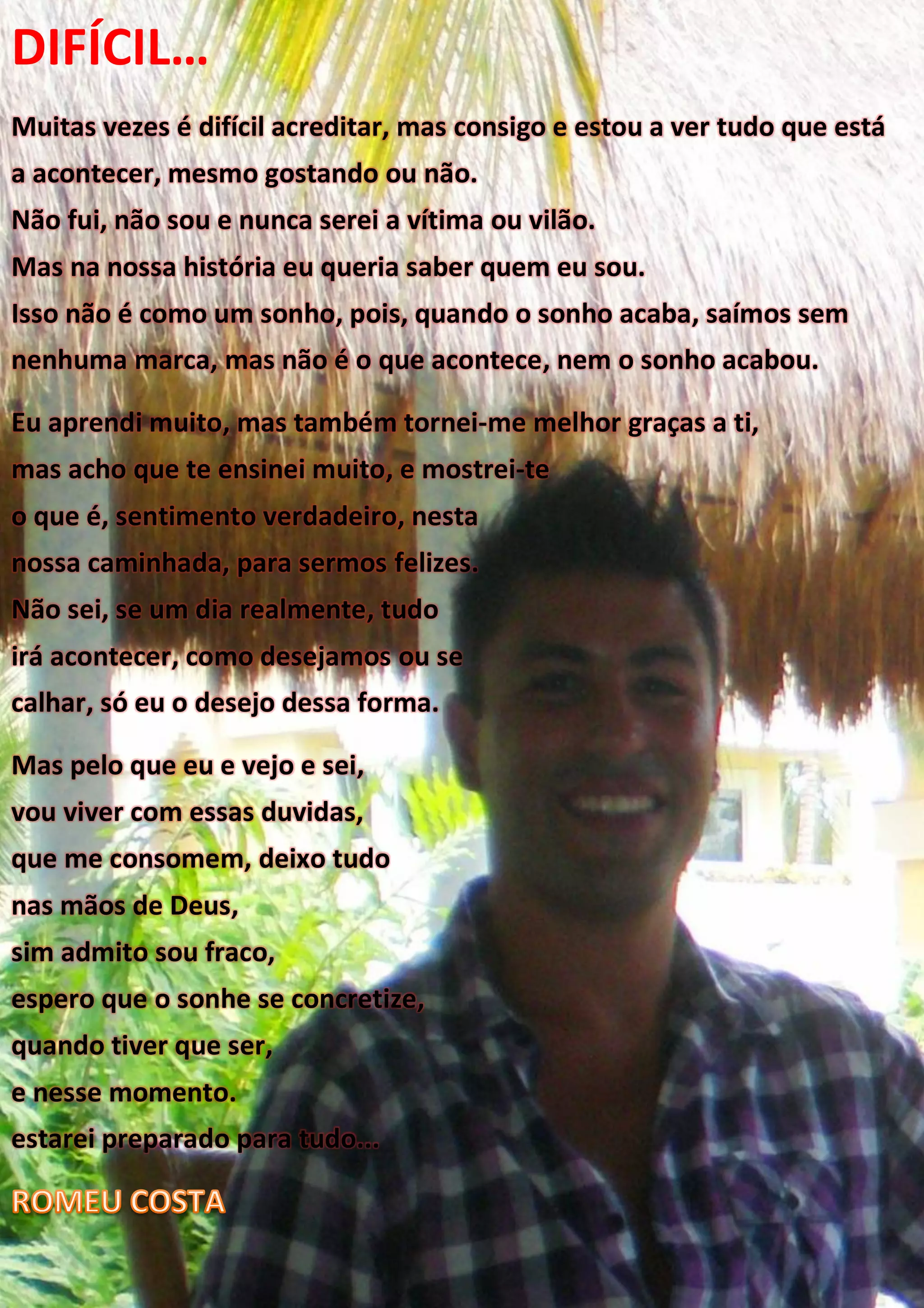 O poema reflete sobre as dificuldades da vida e das relações, mas expressa a esperança de que o sonho de felicidade ainda pode se concretizar com a ajuda de Deus. O autor aprendeu lições valiosas através das experiências, tanto positivas quanto negativas, e embora ainda tenha dúvidas, está preparado para o que possa vir.