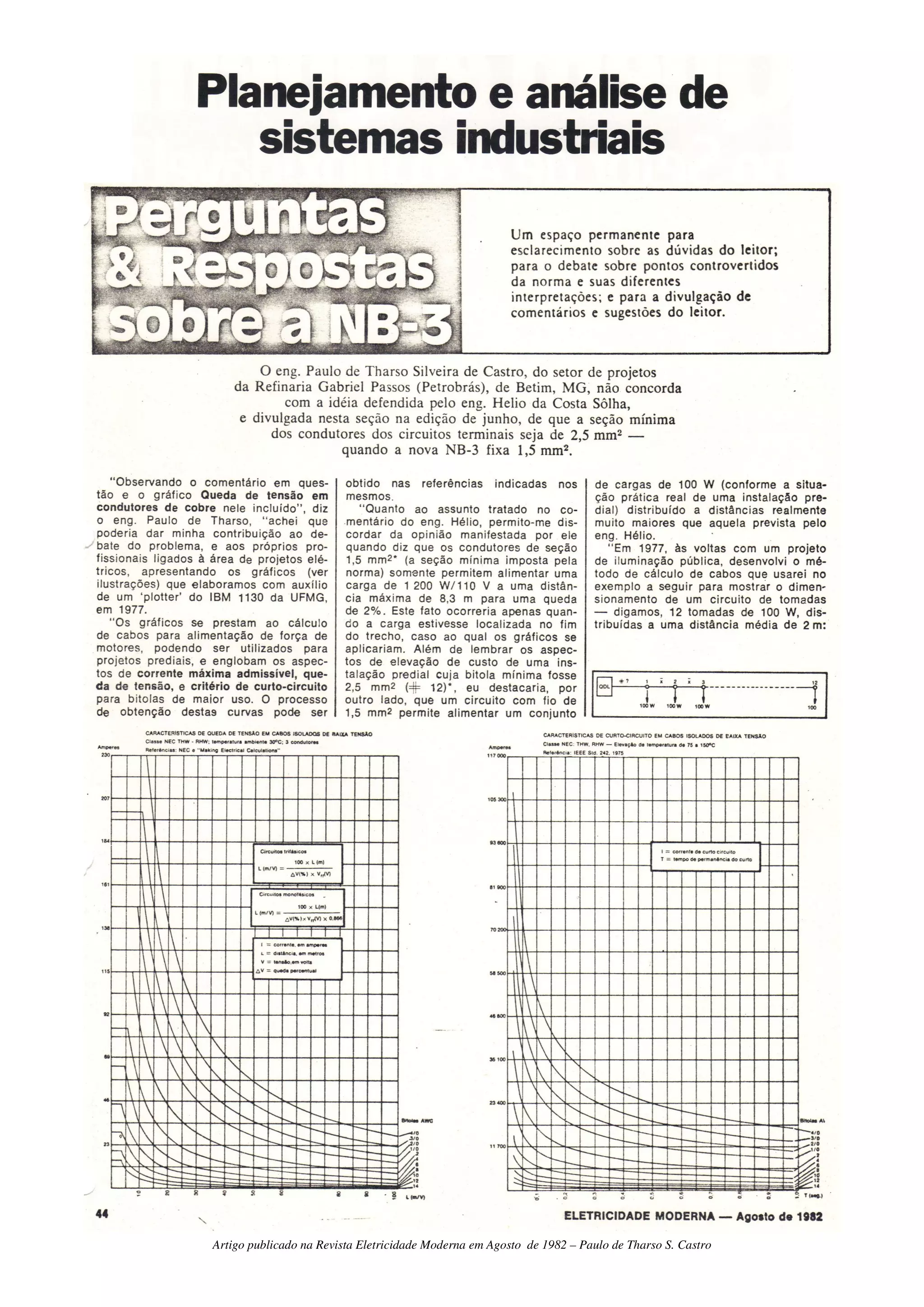 O artigo de Paulo de Tharso S. Castro, publicado na revista Eletricidade Moderna em agosto de 1982, discute temas relevantes relacionados ao setor elétrico. A publicação aborda inovações e desafios enfrentados na época. O conteúdo reflete a visão do autor sobre o futuro da eletricidade.
