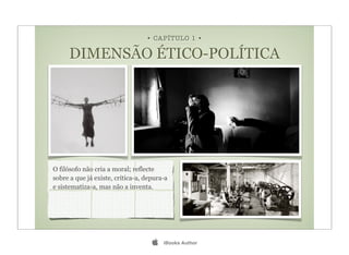 O documento discute a relação entre ética e moral, normas morais e intenção ética. A ética é uma reflexão sobre a moral existente em uma sociedade. As normas morais servem como guias de ação socialmente aceitas, enquanto a intenção ética é pessoal e interior. Normas confrontam a intenção com padrões sociais, mas nem sempre coincidem com a autonomia individual.