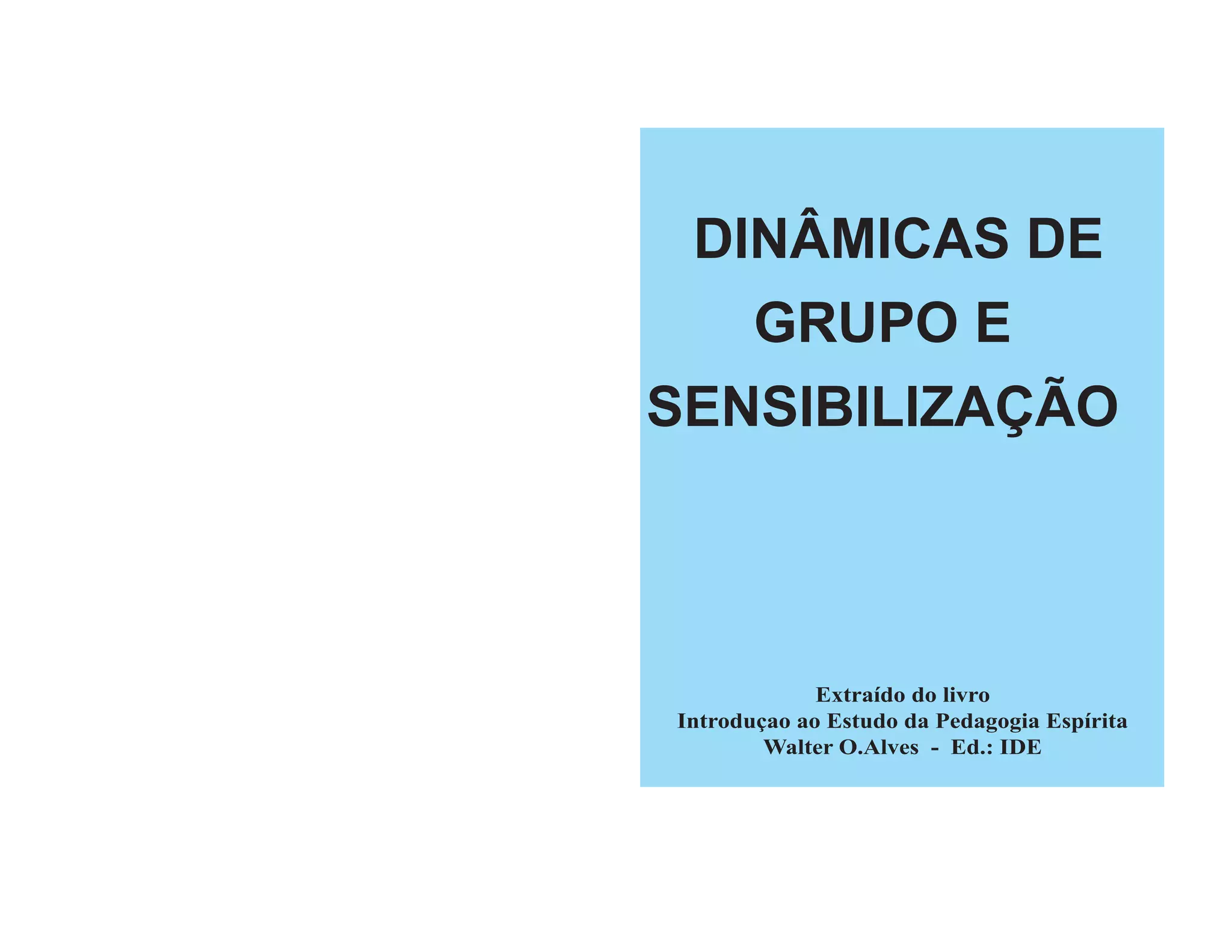 O documento apresenta várias dinâmicas de grupo para sensibilização e integração entre os participantes, como entrevistas mútuas, abraços, exercícios para despertar sentimentos de amizade e solidariedade, atividades que demonstram o valor do trabalho em equipe e a importância de se ter uma visão global dos problemas.