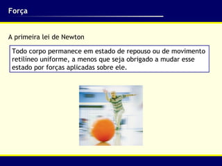 As três primeiras frases resumem as três leis de Newton sobre forças e movimento: 1) Um corpo permanece em repouso ou movimento uniforme a menos que uma força externa atue sobre ele; 2) A aceleração de um corpo é diretamente proporcional à força resultante aplicada e inversamente proporcional à sua massa; 3) À toda ação corresponde uma reação igual e oposta.