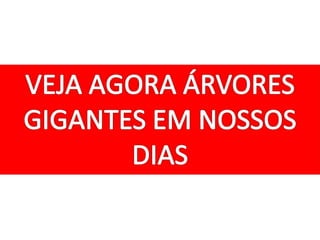 O documento discute a existência de gigantes e dinossauros antes do dilúvio, afirmando que: (1) os antediluvianos eram muito inteligentes mas usavam seu conhecimento para o mal; (2) Satanás pode ter criado dinossauros e outros animais gigantes através da manipulação genética; (3) esses animais não caberiam na arca e foram destruídos no dilúvio, enquanto as espécies originais de Deus foram preservadas.