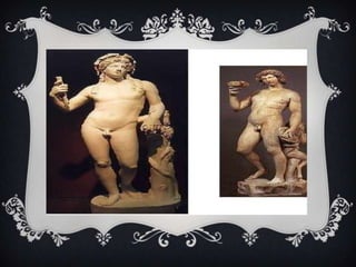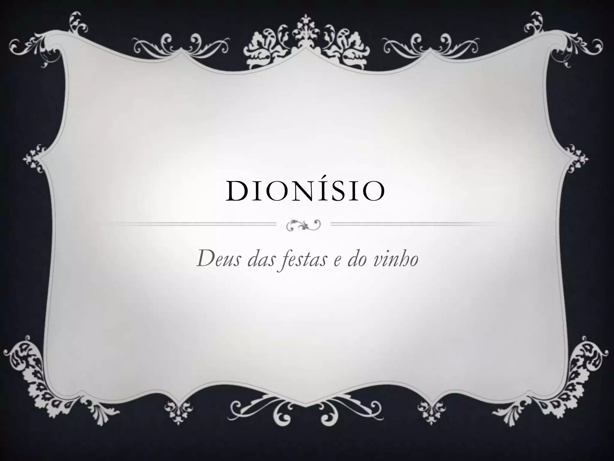 Dionísio era o deus grego do vinho, da festa e do teatro. Filho de Zeus e da mortal Semele, nasceu depois que Hera fez Semele se incendiar, mas Zeus salvou o feto costurando-o em sua coxa. Adulto, Dionísio ensinou os humanos a cultivar parreiras e produzir vinho, sendo venerado em festivais em sua honra que incluíam orgias e loucura. Também era um guerreiro poderoso que sempre derrotava seus inimigos.