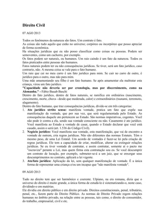 2) Existem fatos jurídicos ordinários e extraordinários decorrentes de causas naturais ou humanas.