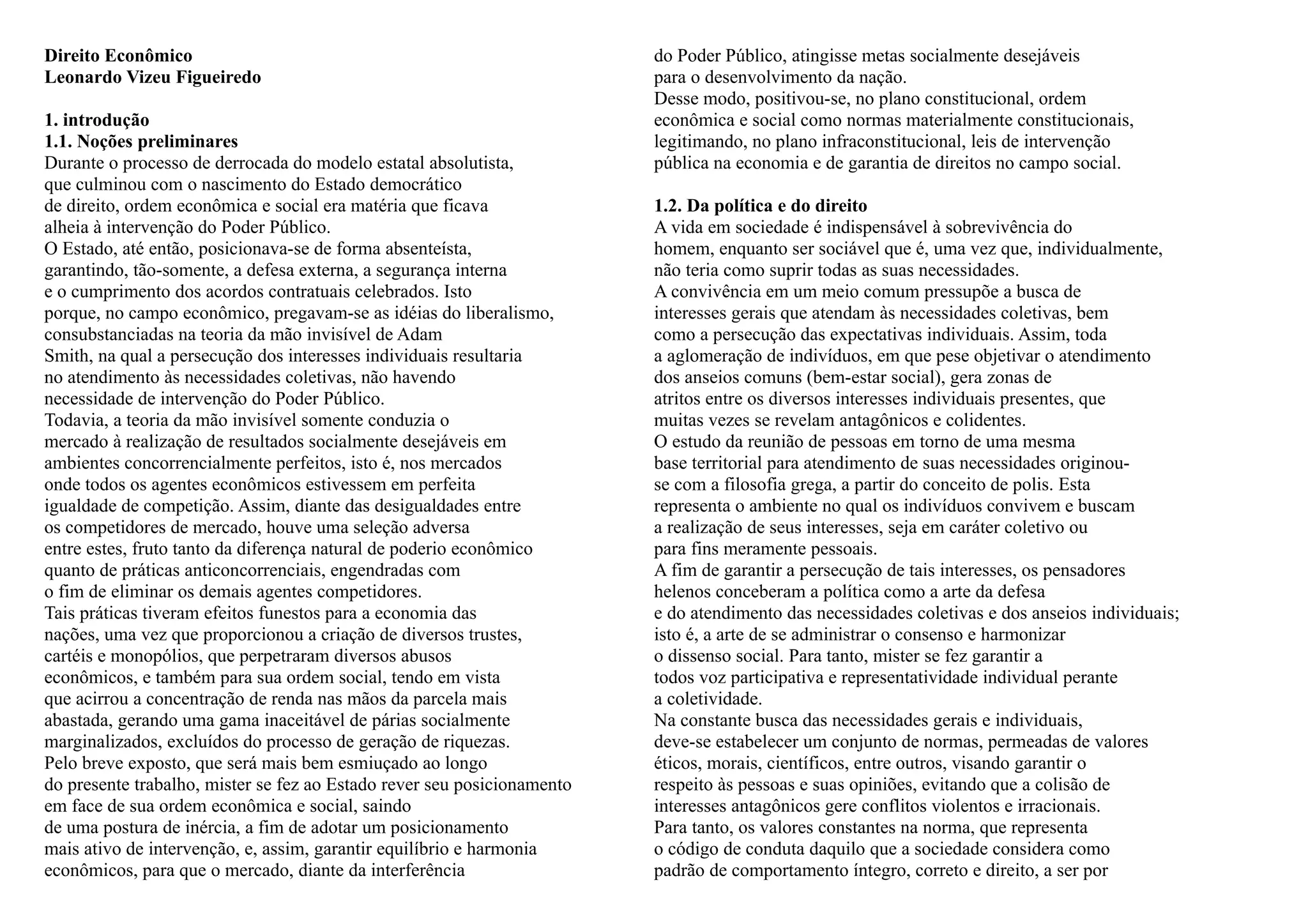 1. O documento discute o surgimento e conceito de direito econômico. Inicialmente, o Estado tinha uma postura de não intervenção na economia, mas passou a intervir para corrigir desequilíbrios e atingir metas sociais.