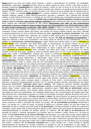 1. O documento discute o direito coletivo e o processo coletivo no Brasil, definindo-os como conjuntos de normas que protegem direitos individuais e garantam o desenvolvimento da sociedade de forma estável e previsível.