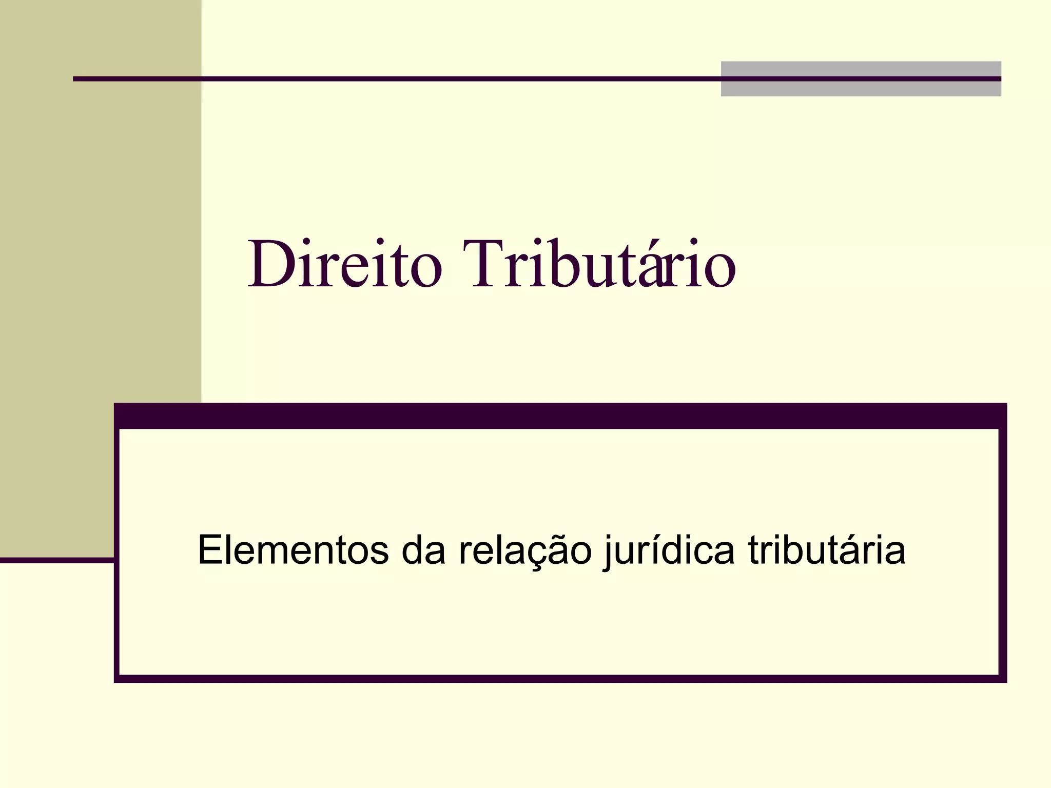 2) As relações jurídicas tributárias possuem elementos como sujeitos ativo e passivo, e objetos que podem ser prestações principais ou acessórias.