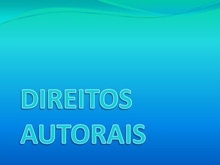 O documento discute os direitos autorais, definindo-os como os direitos dos autores sobre suas obras intelectuais, literárias, artísticas ou científicas. Estes direitos incluem tanto direitos morais quanto patrimoniais. Além disso, o texto explica as diferenças entre o sistema de direitos autorais e o sistema de copyright, e discute questões como reprodução, contrafação e domínio público.