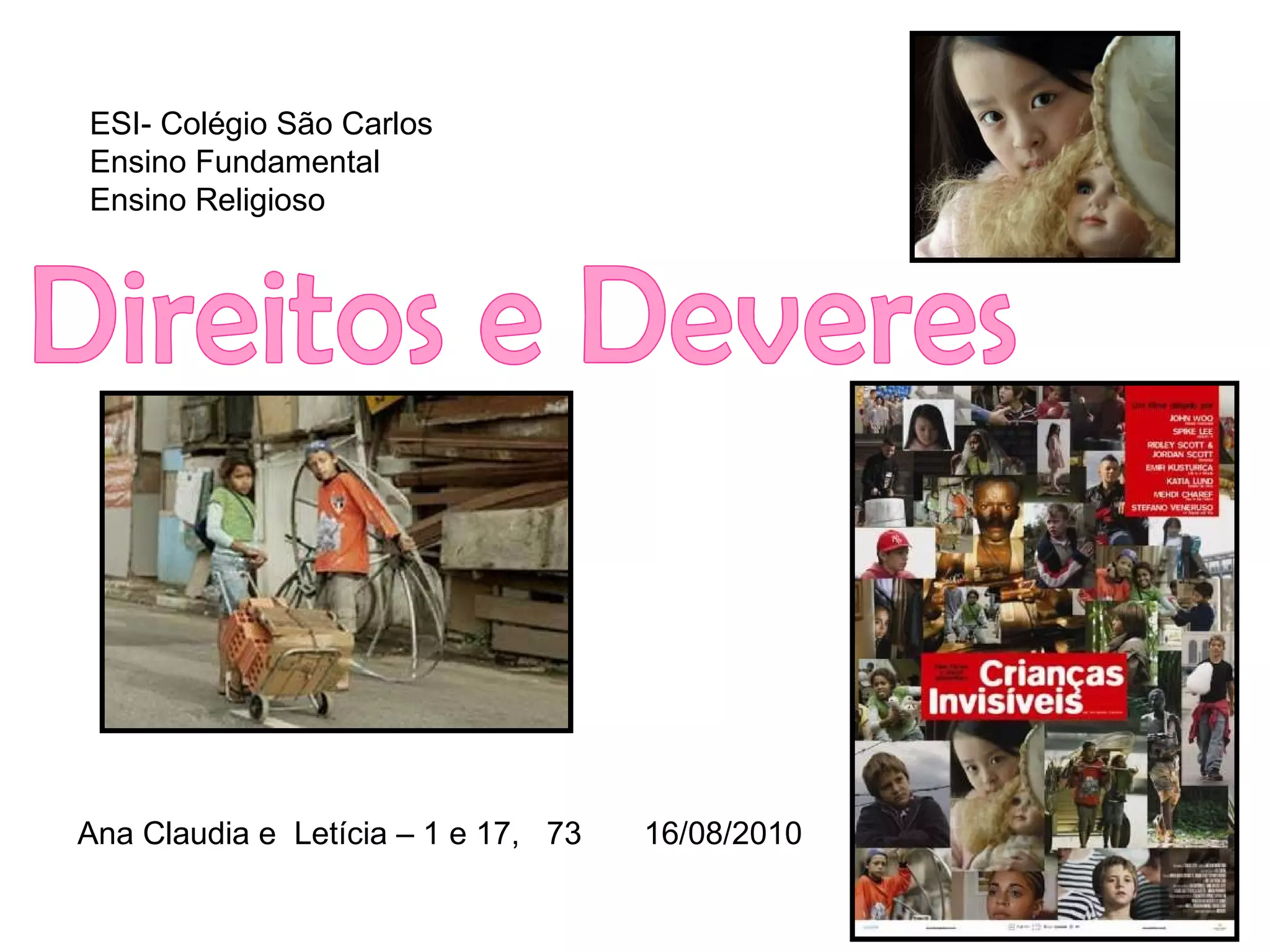 O documento discute os direitos humanos e das crianças. Ele explica a importância de organizações como a ONU, UNICEF e Declaração Universal dos Direitos Humanos em proteger os direitos das pessoas e das crianças em todo o mundo e promover a paz entre as nações.