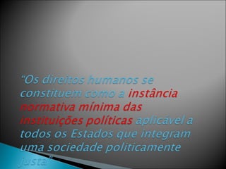 1. O documento discute os direitos humanos na história e sua fundamentação.