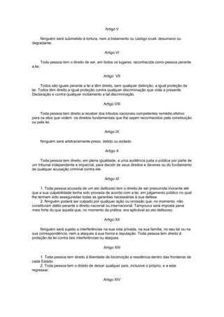 O documento é a Declaração Universal dos Direitos Humanos adotada pelas Nações Unidas em 1948. Ela reconhece a dignidade e direitos iguais de todos os seres humanos e estabelece 30 artigos que definem os direitos civis, políticos, econômicos, sociais e culturais básicos de todas as pessoas.