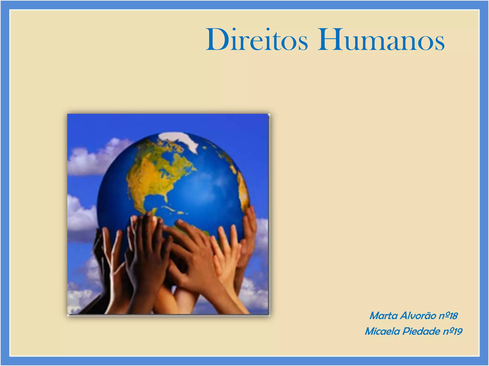 O documento discute os direitos humanos, definindo-os como direitos e liberdades inerentes a todos os seres humanos, independentemente de quem sejam ou onde vivam. Apresenta a Declaração Universal dos Direitos Humanos de 1948 como o documento fundador que protege esses direitos sob o direito internacional. Explica que a Declaração foi criada após as atrocidades da Segunda Guerra Mundial para estabelecer novas formas de os países e pessoas se relacionarem.