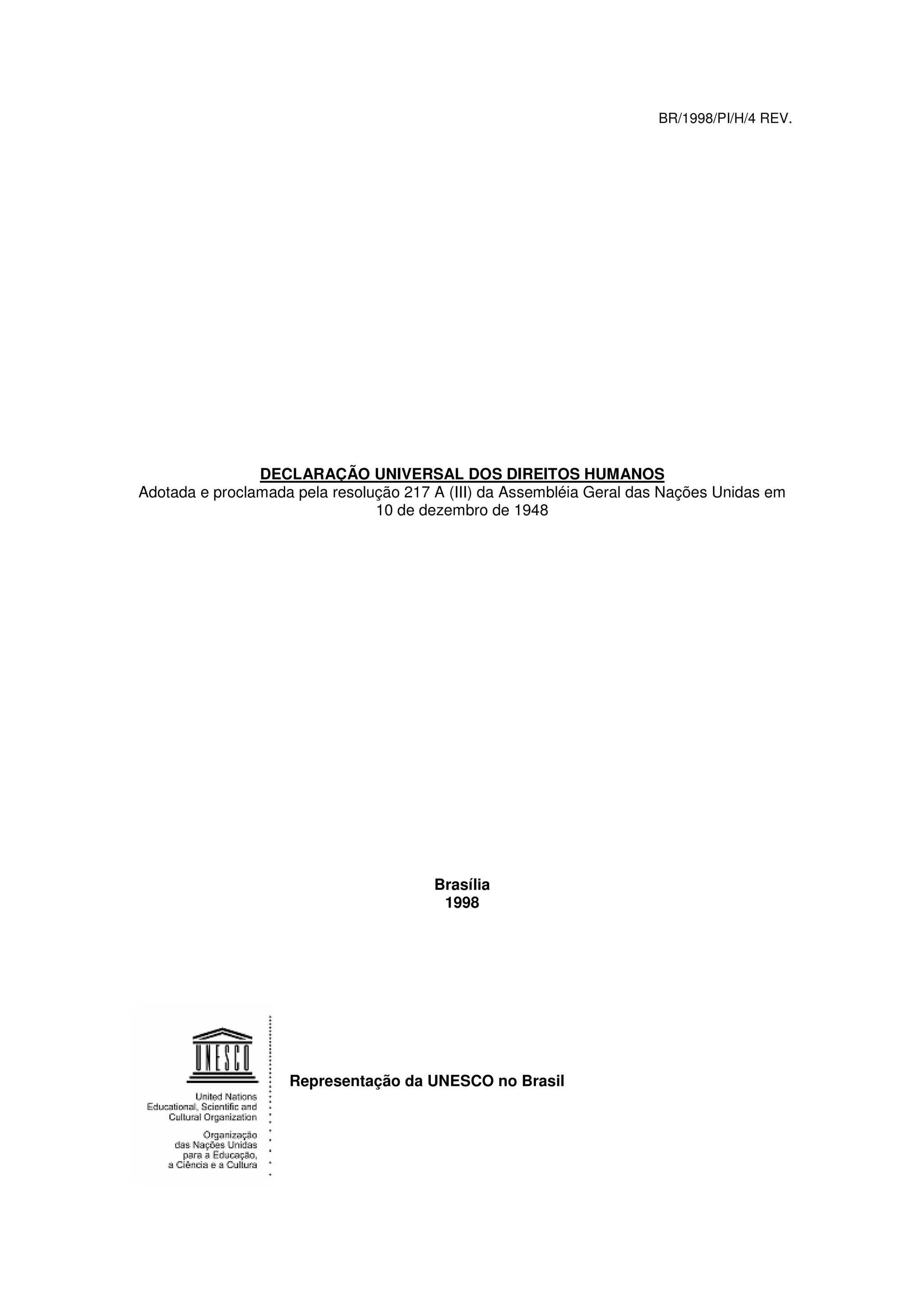 A Declaração Universal dos Direitos Humanos estabelece os direitos e liberdades fundamentais de todos os seres humanos. Foi adotada pela Assembléia Geral da ONU em 1948 para promover a dignidade, justiça e paz no mundo através do respeito universal aos direitos humanos. Ela lista 30 artigos cobrindo direitos civis, políticos, econômicos, sociais e culturais, como o direito à vida, igualdade, propriedade, liberdade de expressão e religião.
