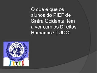 Os alunos do PIEF de Sintra Ocidental assistiram a documentários sobre os Direitos Humanos promovidos pela Amnistia Internacional e escreveram sobre os filmes "China Blue" e "Crianças de Gaza". Eles acharam a experiência no Centro Cultural e o debate posterior interessantes e espectaculares.