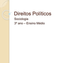 O documento discute a evolução histórica dos direitos políticos, desde a Revolução Francesa até o século XIX. Antes da Revolução Francesa, a aristocracia concentrava o poder político. Após a revolução, a burguesia começou a participar ativamente das decisões do Estado. Importantes movimentos históricos como as Revoluções Inglesas, Americana e Francesa ampliaram a participação política da população e limitaram o poder absoluto da monarquia.
