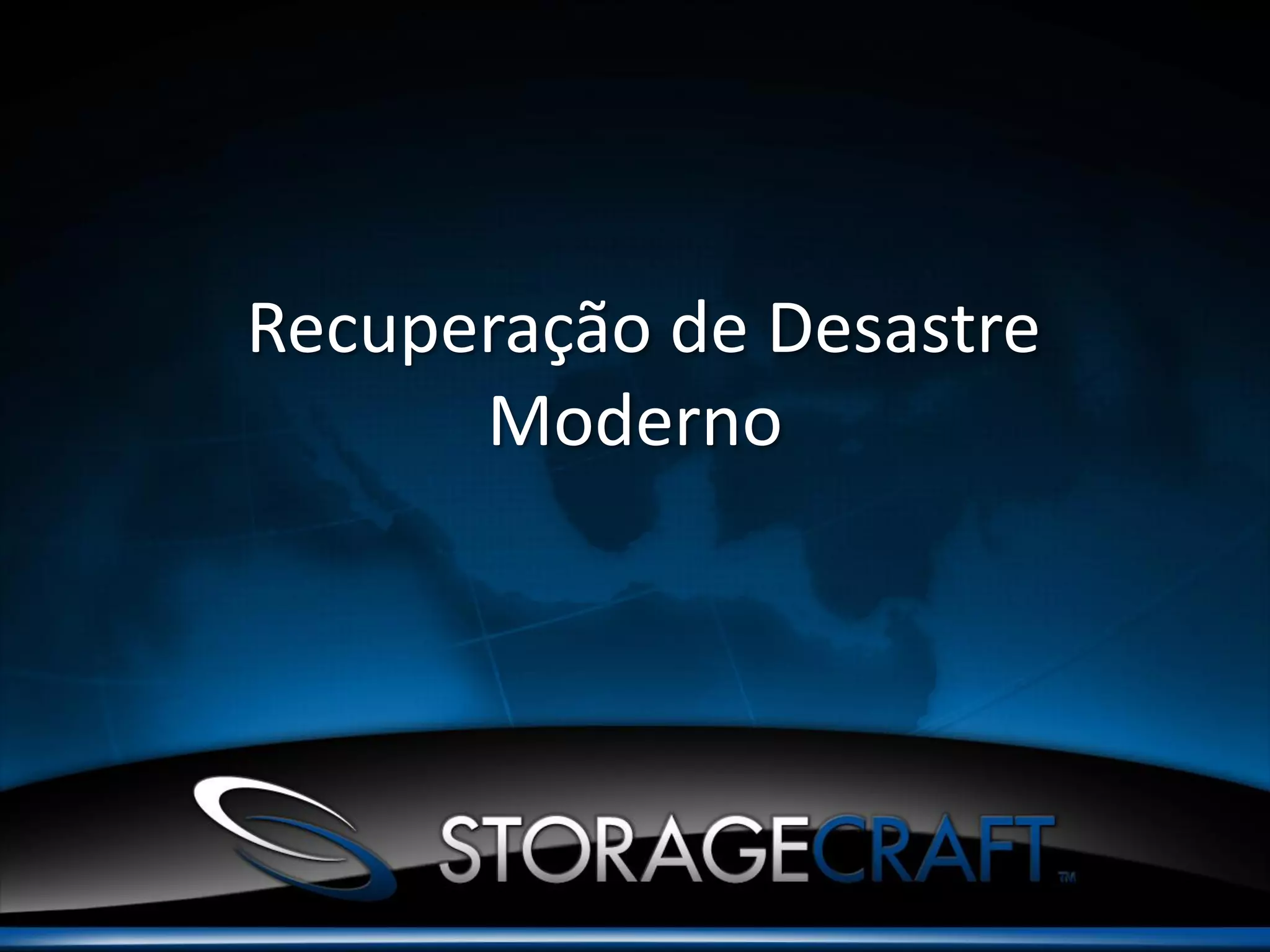 O documento discute os desafios da recuperação de desastres moderna e como implementar um plano de continuidade de negócios eficaz. Aborda os tipos comuns de desastres e suas soluções, os custos associados à recuperação de desastres e as soluções atuais como o StorageCraft que fornecem recuperação rápida de dados.