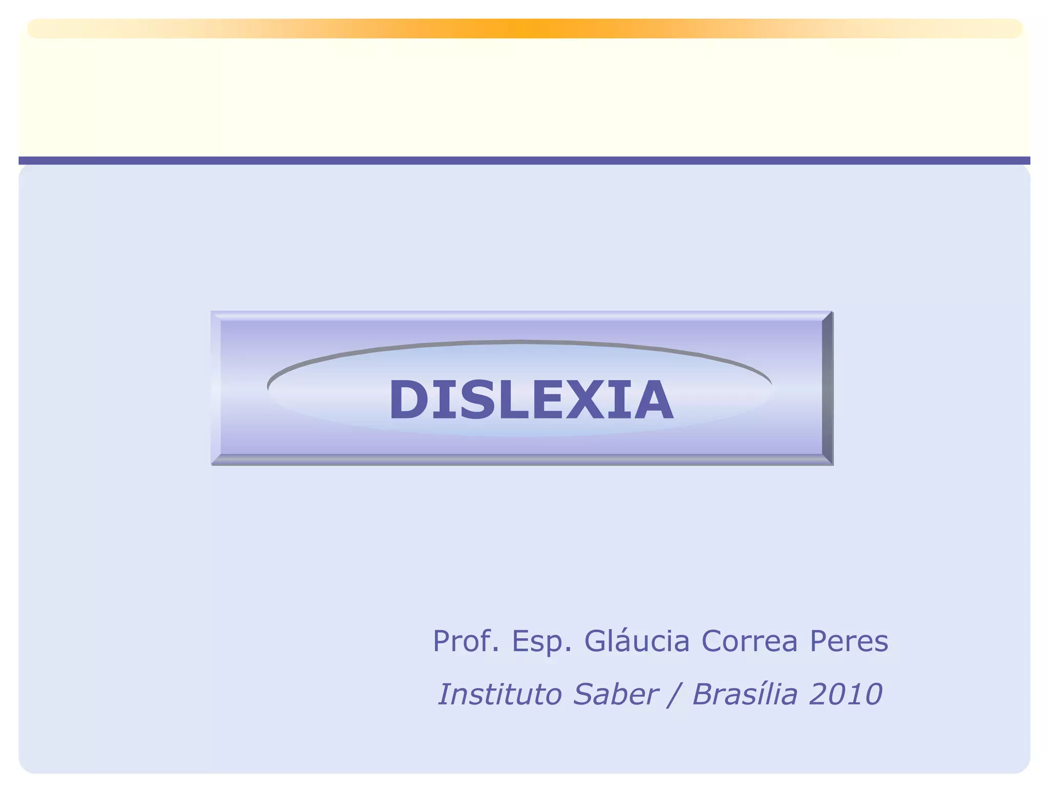 O documento discute as características e abordagens para o tratamento da dislexia. A dislexia é um transtorno específico no reconhecimento de palavras que compromete a compreensão da leitura e escrita. Ela afeta menos de 1% da população escolar e requer um tratamento multidisciplinar e lento. A escola deve dar apoio ao aluno disléxico e adaptar métodos de ensino, avaliação e conteúdos para promover seu aprendizado.