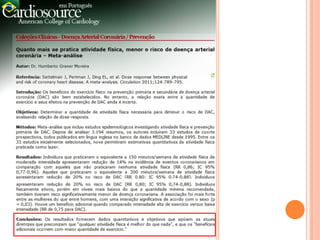 O documento discute as dislipidemias, o transporte de lipídios pelas lipoproteínas, o metabolismo das lipoproteínas e como a atividade física regular pode afetar positivamente o perfil lipídico, reduzindo os níveis de LDL e triglicéridos e aumentando os níveis de HDL. Exercícios aeróbicos parecem ter maiores benefícios no perfil lipídico do que exercícios de resistência. A prática regular de exercícios é recomendada como parte do tratamento e prevenção de
