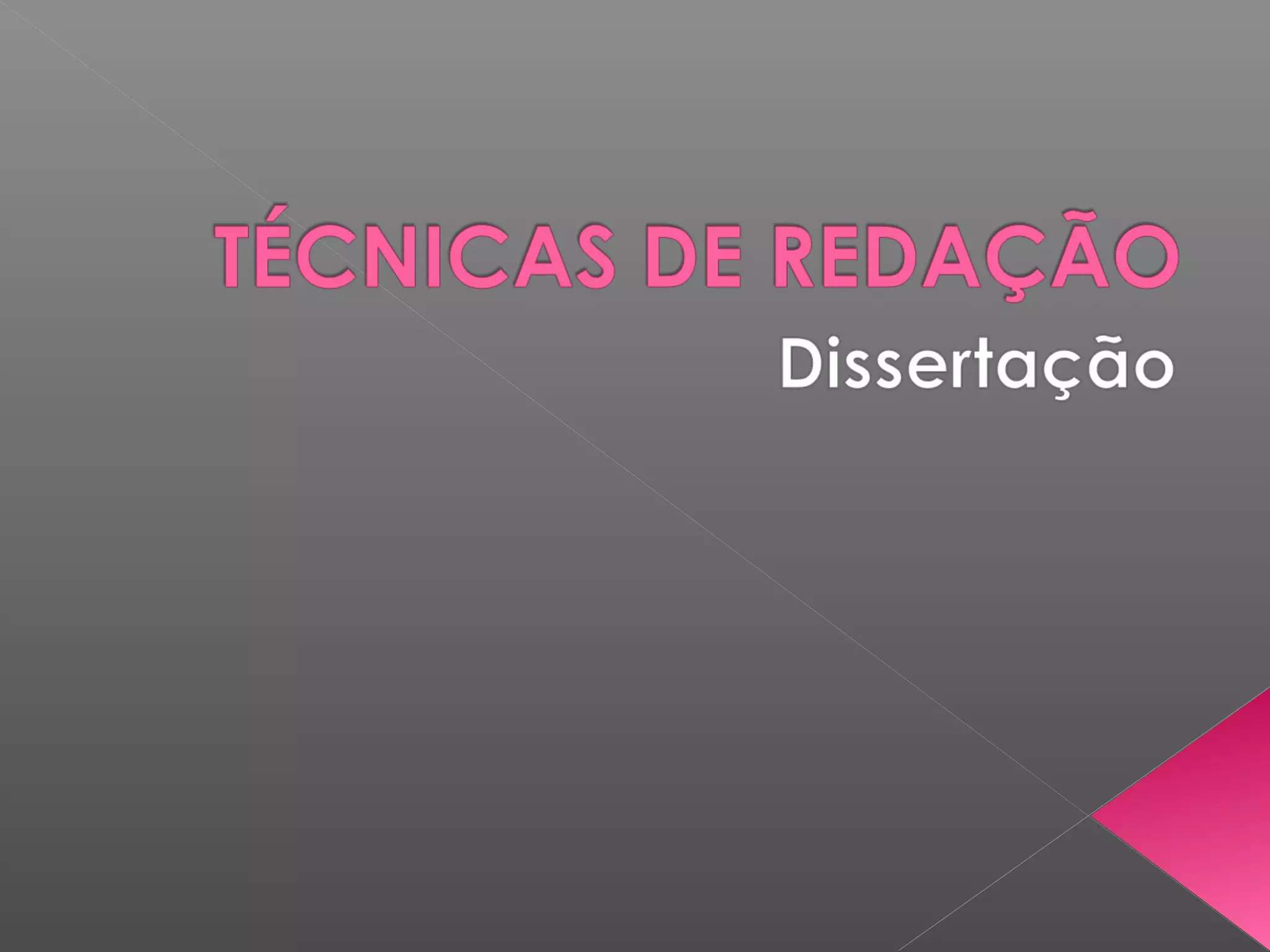 O documento discute o que é uma dissertação, definindo-a como a apresentação de ideias e argumentos por meio da organização de palavras e textos. Explica que existem duas tipos de dissertação - expositiva, que expõe ideias, e argumentativa, que busca persuadir. Também descreve a estrutura tradicional de uma dissertação, incluindo introdução, desenvolvimento e conclusão.