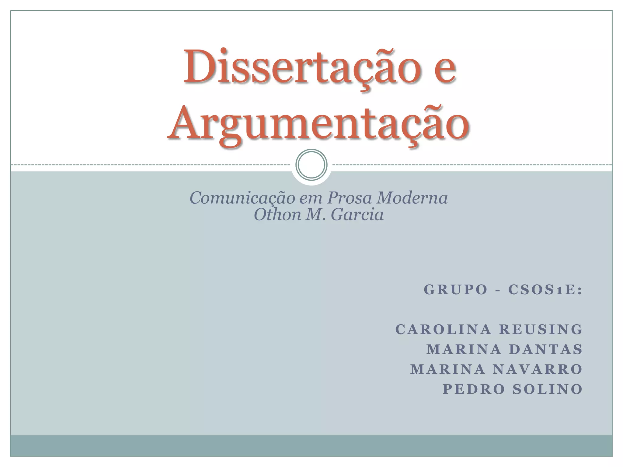 O documento discute os conceitos de dissertação e argumentação. A dissertação possui três partes - introdução, desenvolvimento e conclusão. A argumentação visa persuadir o leitor e deve se basear em evidências como fatos, exemplos, dados estatísticos e testemunhos.