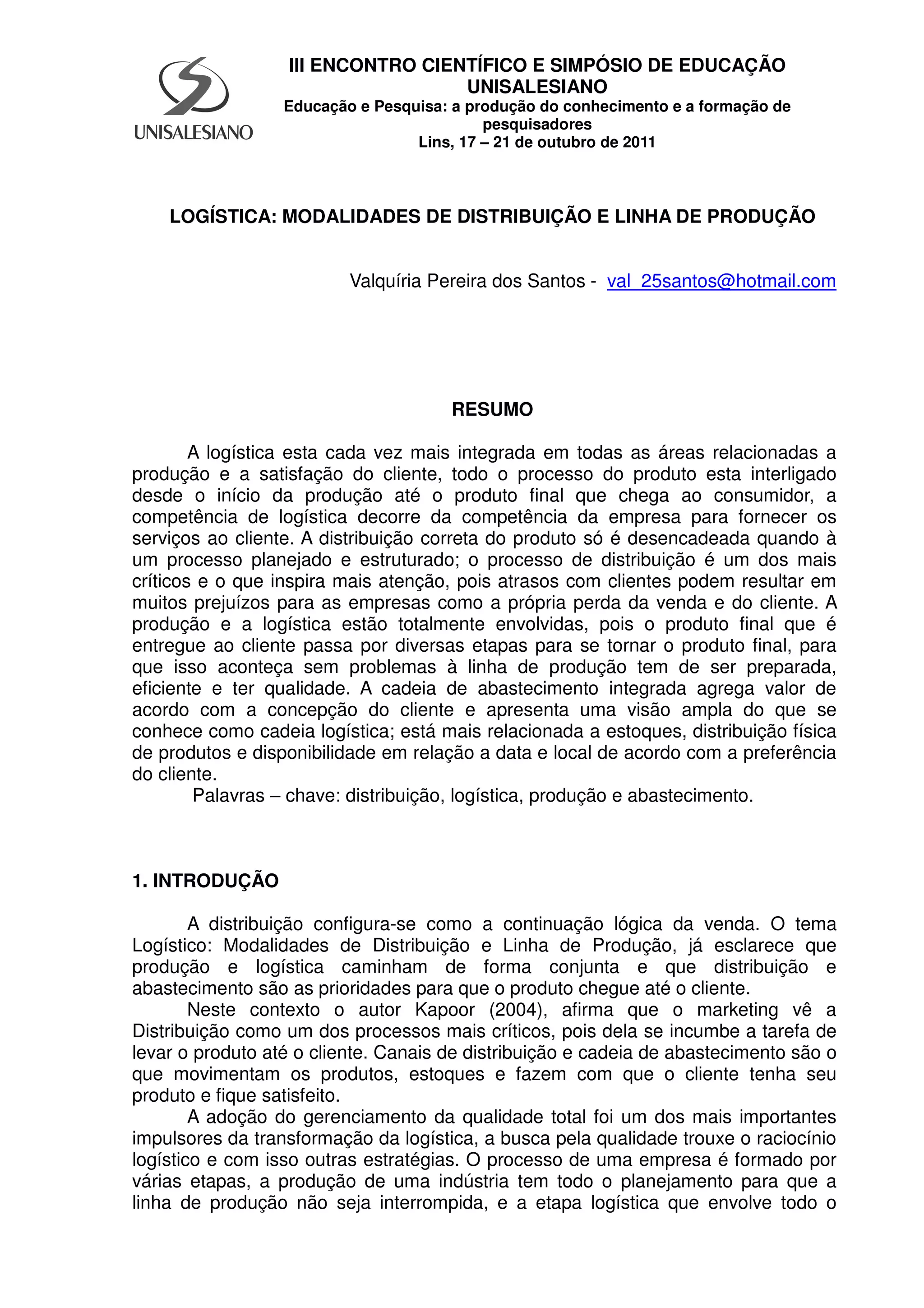 1. O documento discute logística, distribuição, produção e canais de abastecimento.