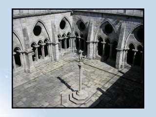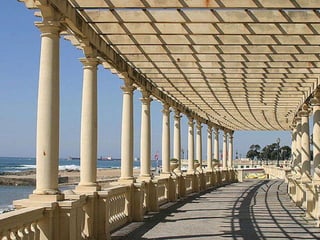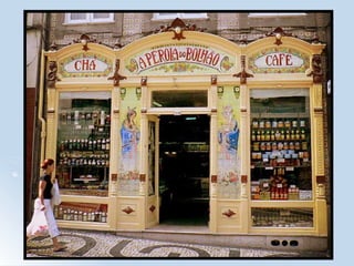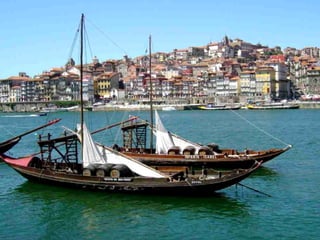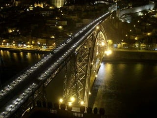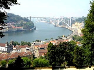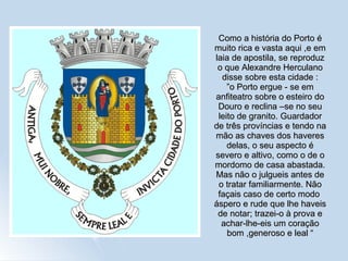 O documento resume as principais atrações históricas e culturais da cidade do Porto, incluindo igrejas como a Sé, Mosteiro de São Francisco e Igreja das Almas, monumentos como a Torre dos Clérigos e o Palácio de Cristal, e obras de arte no Museu Soares dos Reis, como "O Desterrado" de António Soares dos Reis.