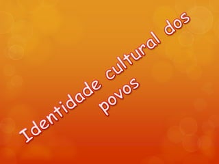 O documento discute os conceitos de cultura e civilização, fornecendo exemplos de culturas antigas e modernas. Também aborda como a diversidade cultural pode gerar problemas como guerras e fomes, e lista fatores que influenciam a identidade cultural como idioma, raça e religião.