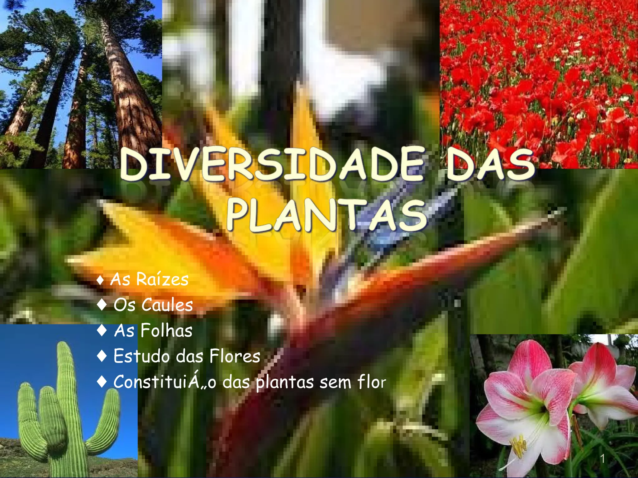 ♦ AsRaízes ♦ Os Caules ♦ As Folhas ♦ Estudo das Flores ♦ Constituição das plantas sem flo r