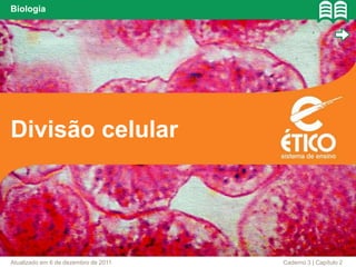 O documento discute os processos de divisão celular de mitose e meiose. A mitose produz duas células filhas geneticamente idênticas à célula mãe, enquanto a meiose produz quatro células filhas com metade do material genético da célula mãe original. O documento explica as fases da mitose e meiose, incluindo a duplicação do DNA, separação dos cromossomos e formação das células filhas.