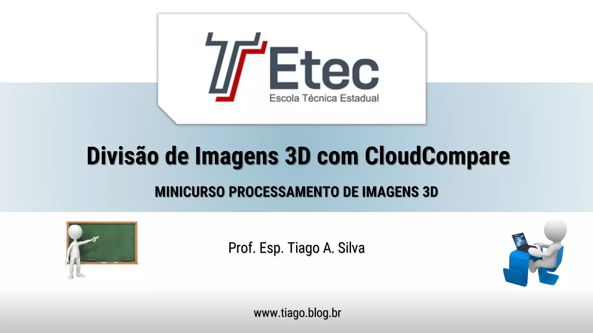 1) O documento apresenta um tutorial sobre como dividir imagens 3D usando o software CloudCompare, ensinando a importar imagens, converter para nuvem de pontos, recortar regiões de interesse, fundir áreas recortadas e alterar cores.