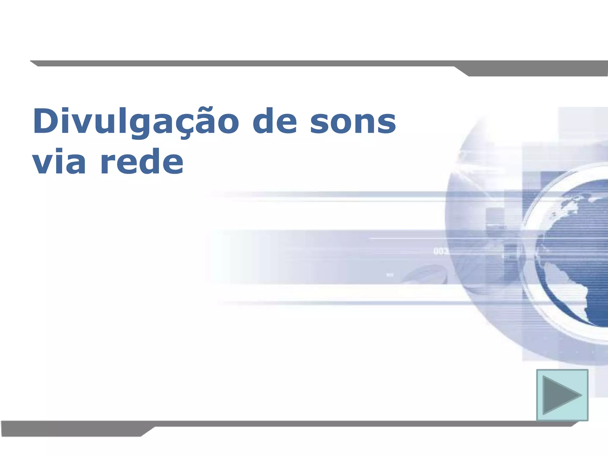 O documento descreve métodos de transmissão de som via rede, incluindo streaming, download e download progressivo. O streaming transmite dados em tempo real através da Internet para aplicações como rádio online. O download transfere ficheiros completos para o computador do utilizador. O download progressivo permite reproduzir ficheiros à medida que são transferidos.