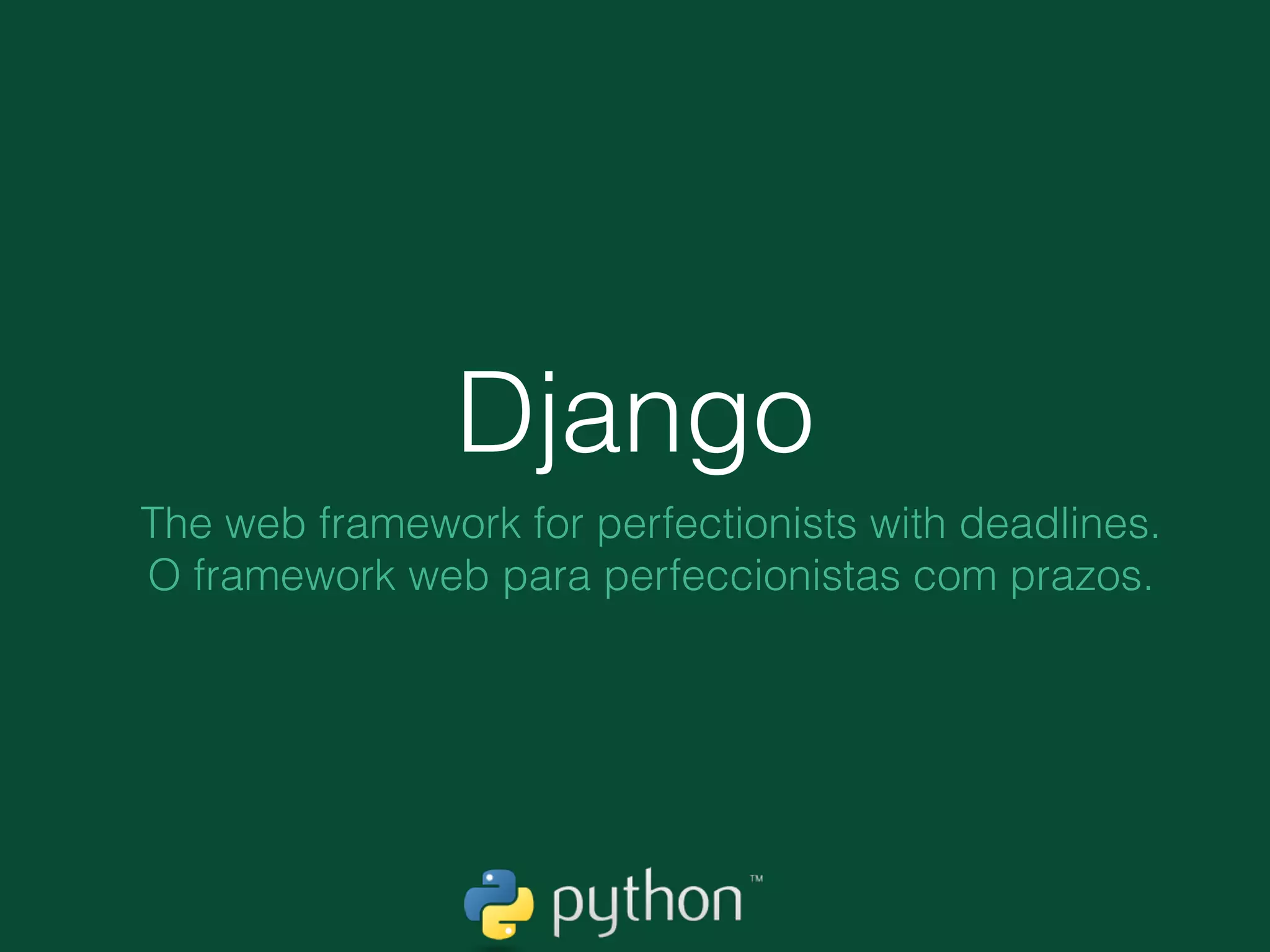 O documento fornece uma introdução ao framework Django, explicando seus principais componentes e como criar um blog simples usando o framework. Em 3 frases: