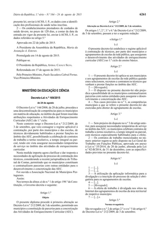 1) O documento altera o Decreto-Lei n.o 212/2009 para permitir que os municípios estabeleçam parcerias com outras entidades para desenvolver atividades de enriquecimento curricular. 2) As alterações clarificam e agilizam o processo de contratação de técnicos para essas atividades. 3) A principal alteração permite que os municípios contratem outras entidades, além de contratar diretamente os técnicos.