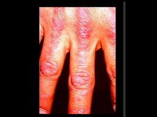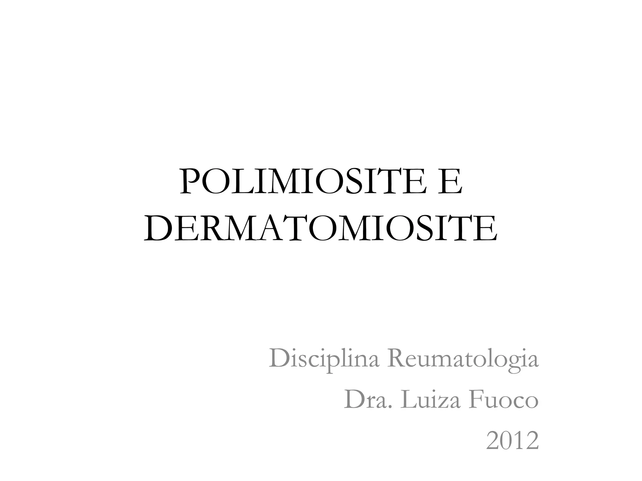 1) O documento discute as polimiosite e dermatomiosite, doenças inflamatórias musculares caracterizadas por inflamação da musculatura estriada.