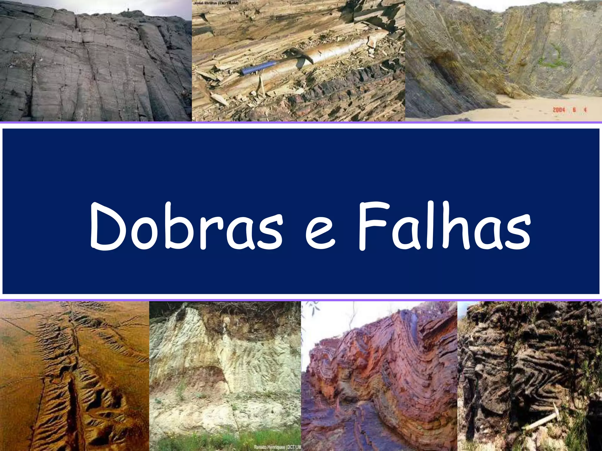 1) As montanhas são formadas pela colisão de placas tectônicas, resultando em dobras nas rochas. 2) Existem três tipos principais de dobras - verticais, inclinadas e deitadas. 3) Falhas geológicas ocorrem quando as rochas se fraturam sob forças compressivas ou distensivas.