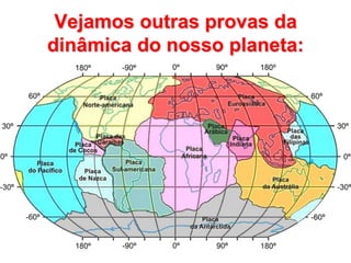O documento discute o comportamento de materiais quando sujeitos a tensões, incluindo como a borracha, plastilina e biscoitos se deformam. Também explica como rochas podem se dobrar ou formar falhas sob forças compressivas ou distensivas, e como fatores como pressão, temperatura e tempo podem influenciar seu comportamento.