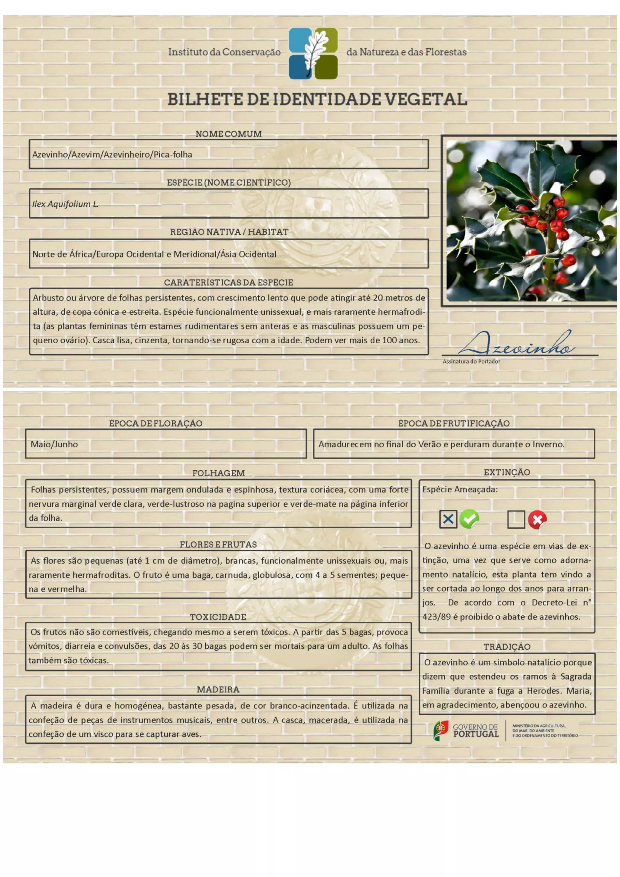 Bilhete de Identidade Vegetal - Azevinho