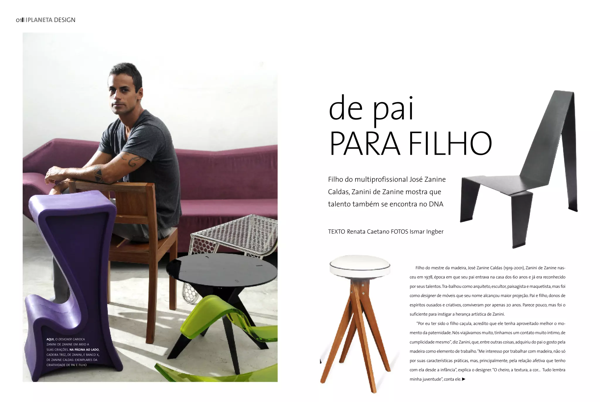 3) Assim como o pai, Zanini gosta de reutilizar materiais descartados e desenvolver designs sustentáveis.