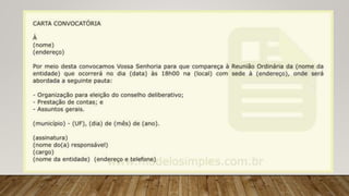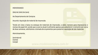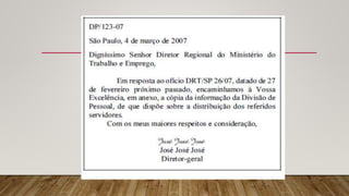 Documentos oficiais são aqueles produzidos por atos da administração pública como atos administrativos, portarias e contratos. Incluem diferentes tipos como atas, certidões, editais e memorandos, que registram informações oficiais de uma instituição.