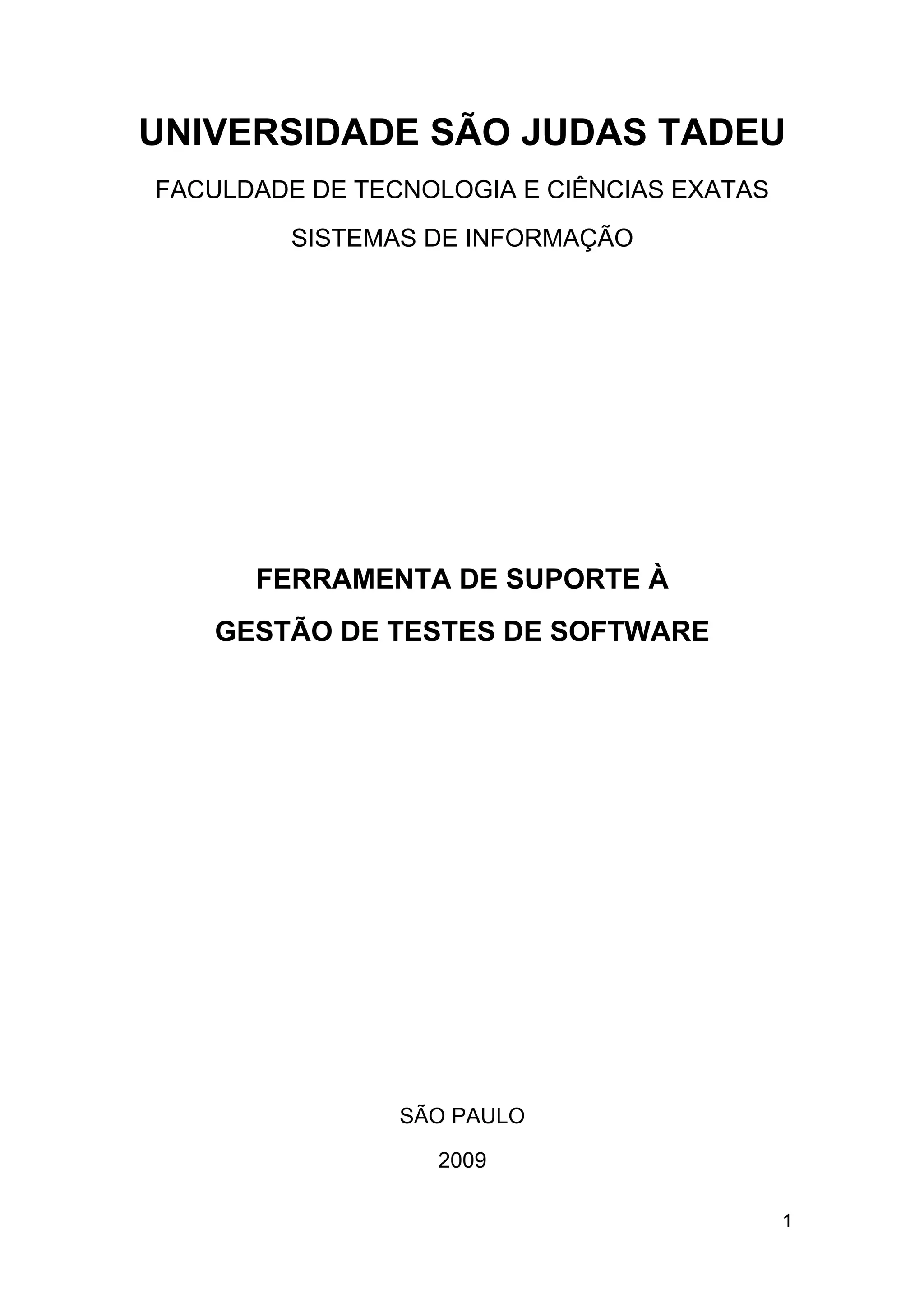 Este documento descreve o desenvolvimento de uma ferramenta de suporte à gestão de testes de software. A ferramenta foi desenvolvida para fornecer funcionalidades essenciais para o processo de testes de forma integrada e intuitiva, além de permitir a geração de indicadores. O documento apresenta detalhes sobre requisitos, projeto, testes e implementação da ferramenta.