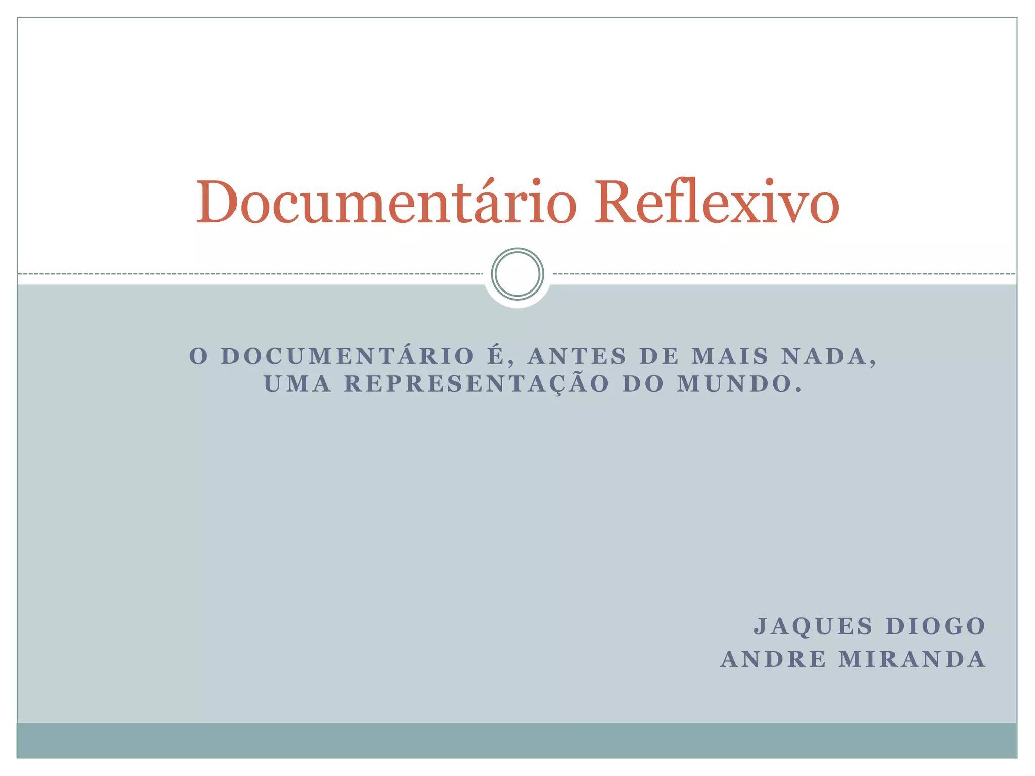 O documento discute os documentários reflexivos, que representam o próprio processo de filmagem e construção da narrativa documental. Esses filmes questionam a noção de que um documentário só é bom quando é convincente, revelando as escolhas do cineasta e a negociação com os espectadores. Exemplos como os filmes de Evaldo Mocarzel e o documentário "Cabra Marcado para Morrer", de Eduardo Coutinho, ilustram essa abordagem reflexiva.