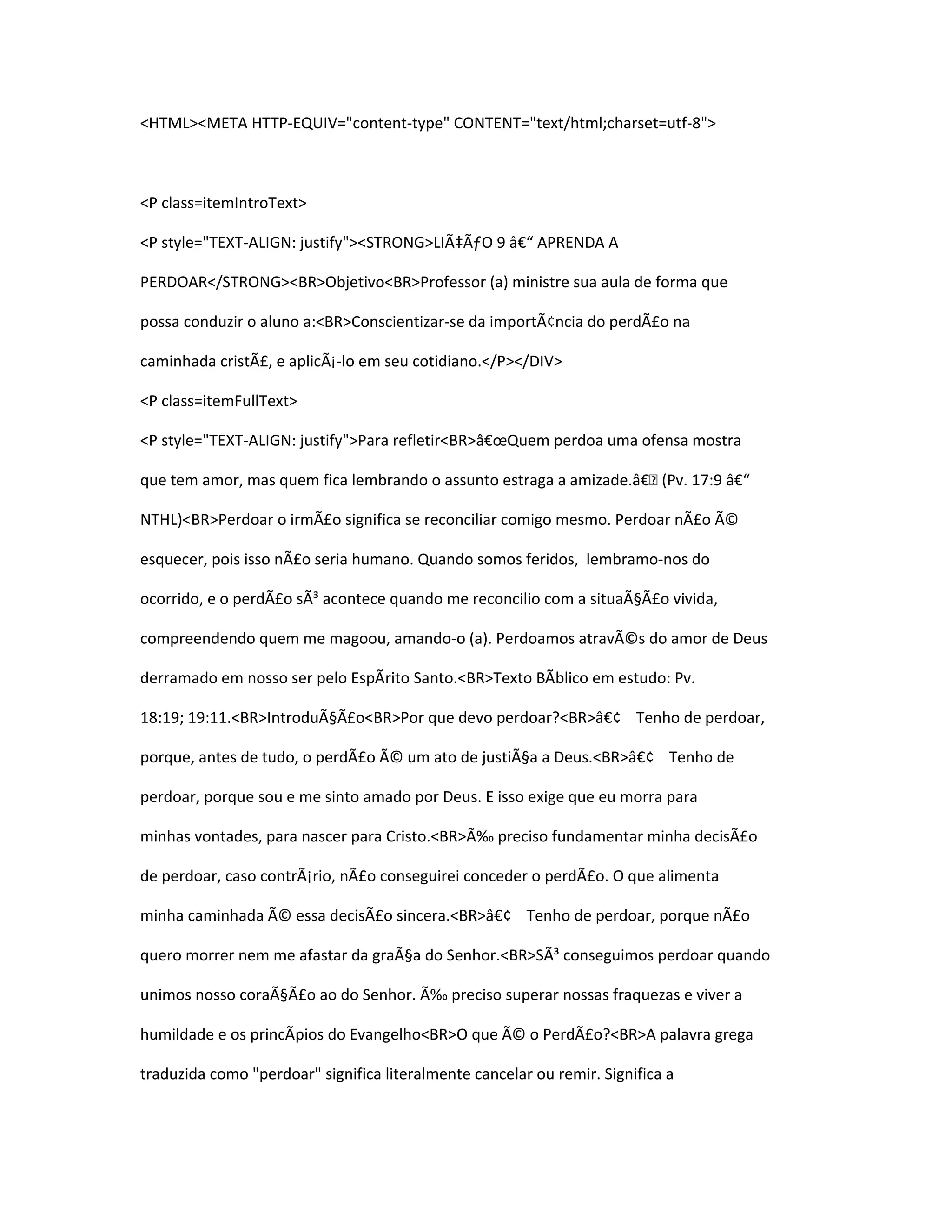 O documento discute a importância do perdão no cristianismo. Ele define perdão como a liberação ou cancelamento de uma dívida espiritual perante Deus. Ensina que devemos perdoar outros assim como Deus nos perdoou através de Cristo, e que Deus só nos perdoará se perdoarmos aqueles que nos ofenderam.