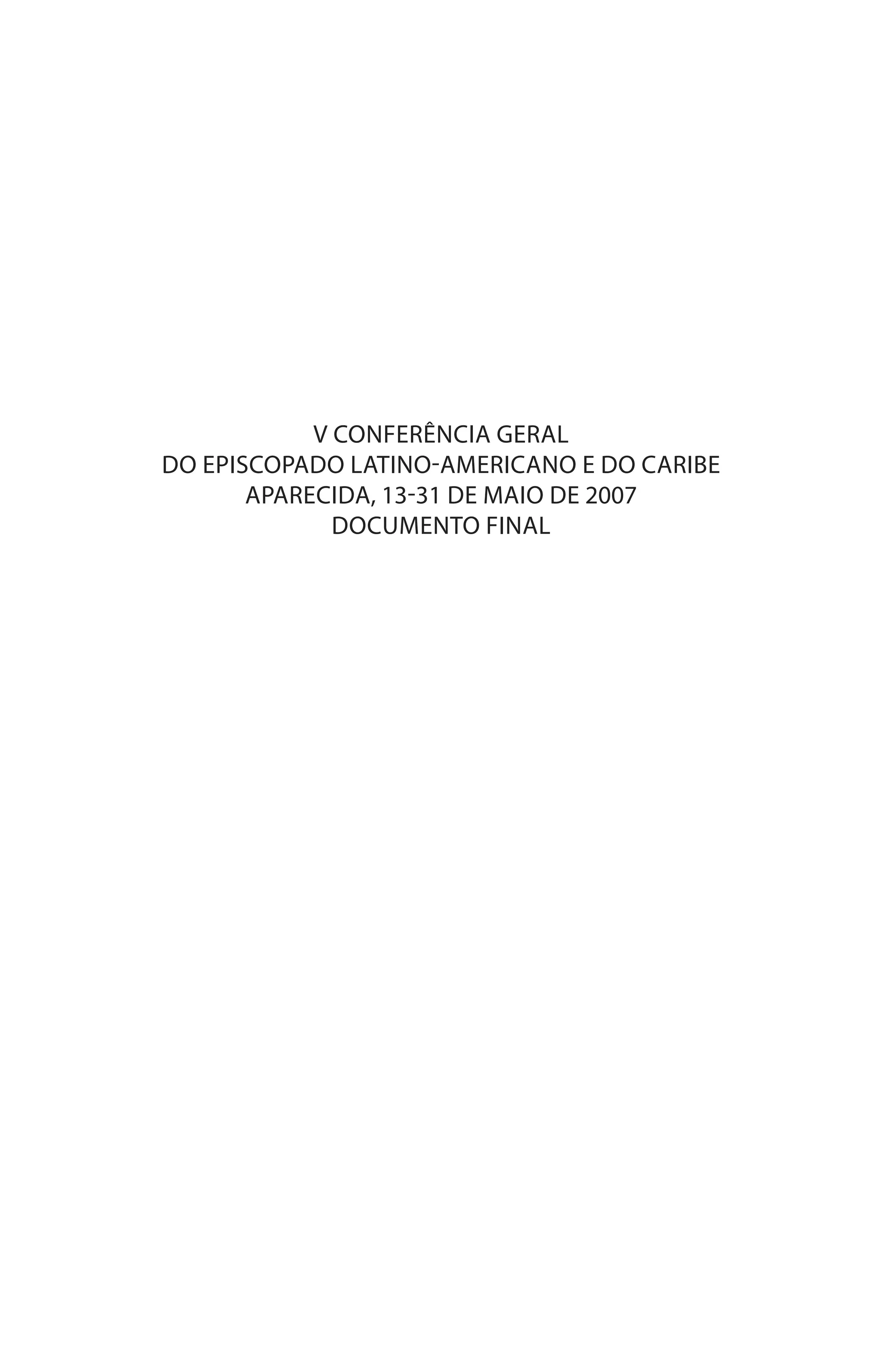Este documento resume a V Conferência Geral do Episcopado Latino-Americano e do Caribe realizada em Aparecida, Brasil. O documento destaca a presença de Maria e do Papa Bento XVI na conferência, e reconhece as luzes e sombras da história da Igreja na América Latina e Caribe. A conferência busca proteger e alimentar a fé dos povos da região e renovar a missão da Igreja diante dos novos desafios.