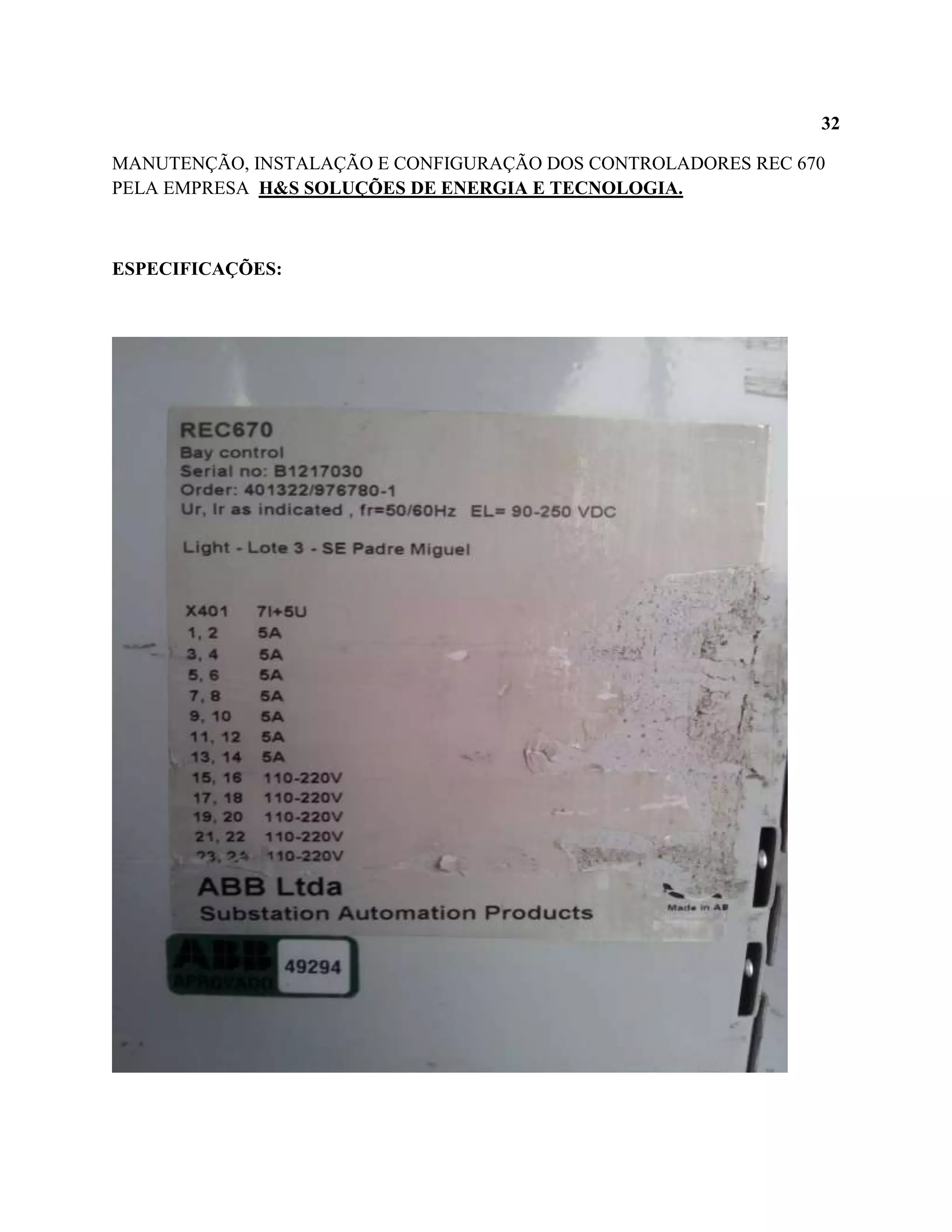 A empresa H&S Soluções de Energia e Tecnologia realizou a manutenção, instalação e configuração de controladores REC 670 para uma empresa.