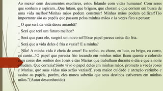 estudam. Que correria!Sinto vivo o papel deles em minhas mãos, prometo a vocês Josés
