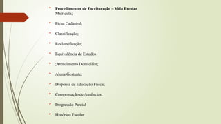 Procedimentos deEscrituração – Vida Escolar