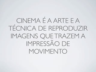 Este documento descreve a origem e evolução do cinema documental desde os primeiros registros cinematográficos no final do século XIX até os dias atuais. Começou com os Irmãos Lumière criando o cinematógrafo e fazendo os primeiros filmes documentais, e evoluiu para incluir locações reais e dramatizações feitas por diretores como Flaherty e Ruttman nas décadas de 1920 e 1930, e depois estilos como cinema direto e reportagens em profundidade nas décadas seguintes, culminando em uma grande produção e consumo