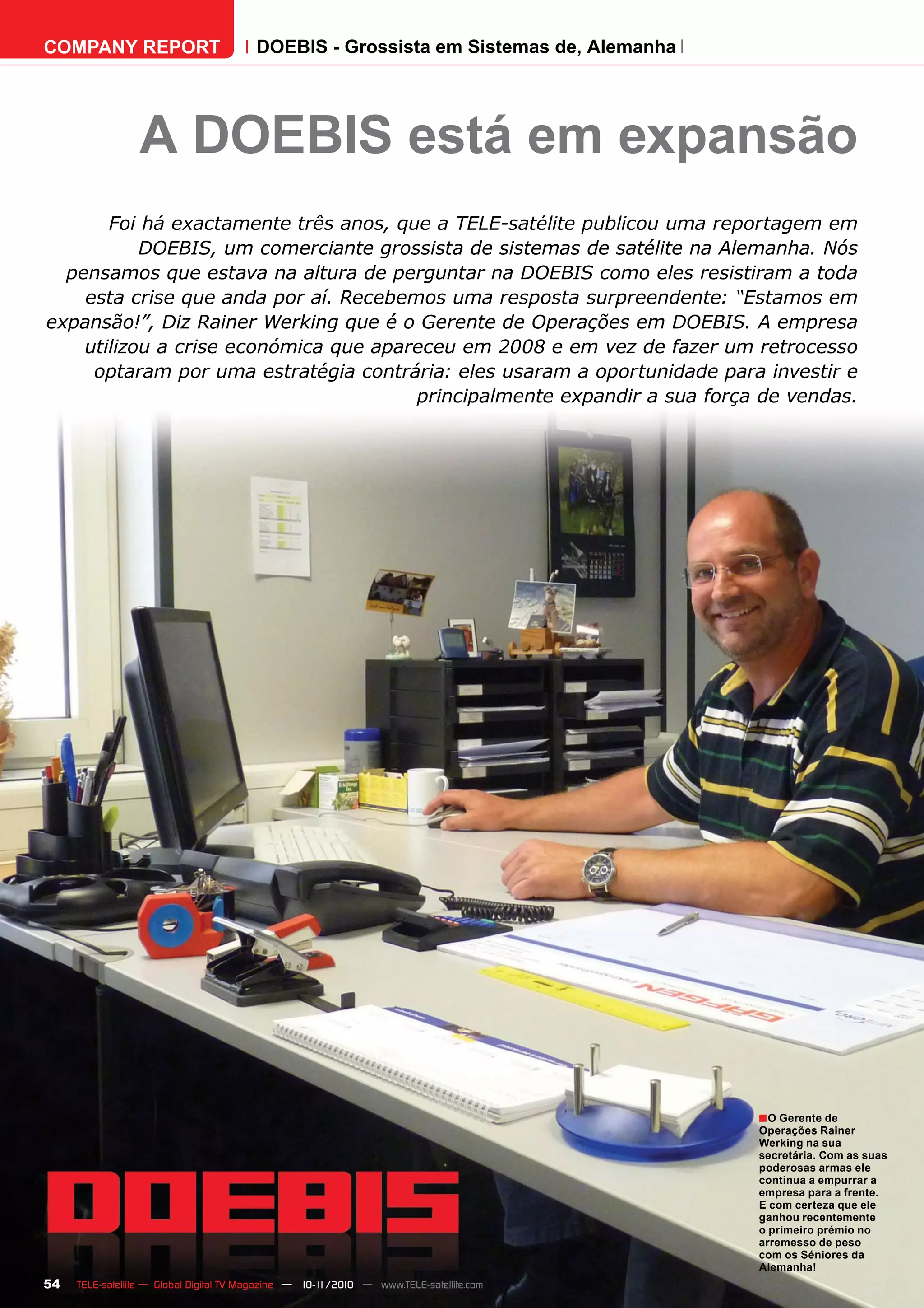 A empresa alemã DOEBIS, especializada em sistemas de satélite, está expandindo suas operações apesar da crise econômica. Eles investiram em aumentar sua força de vendas de 10 para 25 funcionários e esperam um crescimento de vendas de 25% até 2010 e mais 10% em 2011. DOEBIS também adicionou as marcas TOPFIELD e STRONG em seu portfólio para impulsionar ainda mais as vendas.